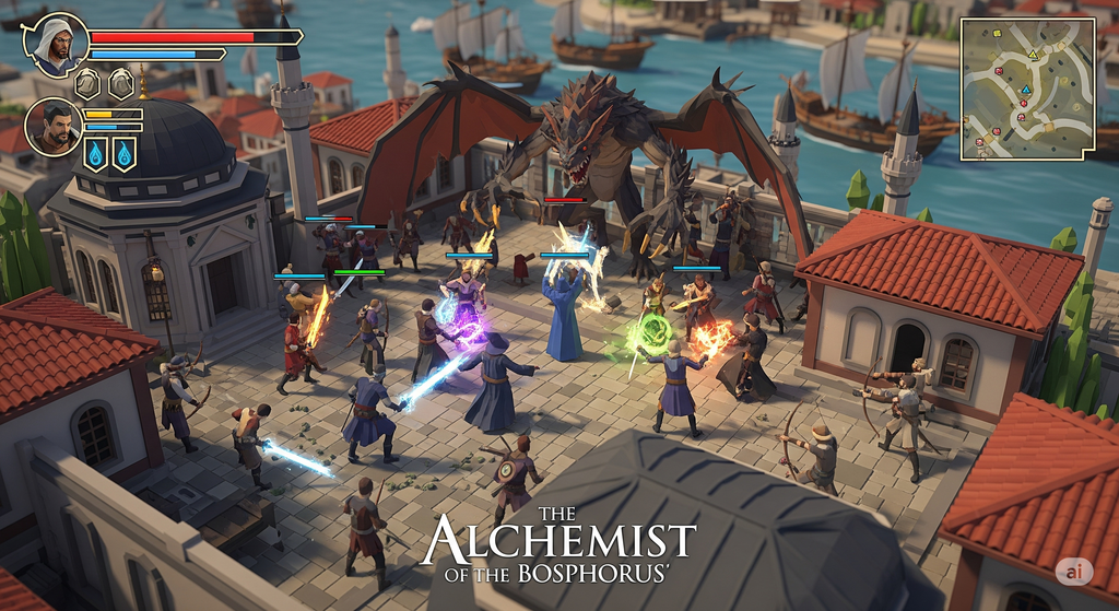 In a mystical 16th century Istanbul, where magic intertwines with the mundane, you are the Alchemist of the Bosphorus. Renowned for your arcane knowledge and potent concoctions, you are drawn into a perilous quest. Creatures of myth stir in the shadows, and ancient secrets are whispered on the winds. Brew powerful spells, wield enchanted artifacts, and forge your destiny as you navigate a world teeming with danger and wonder along the legendary Bosphorus.